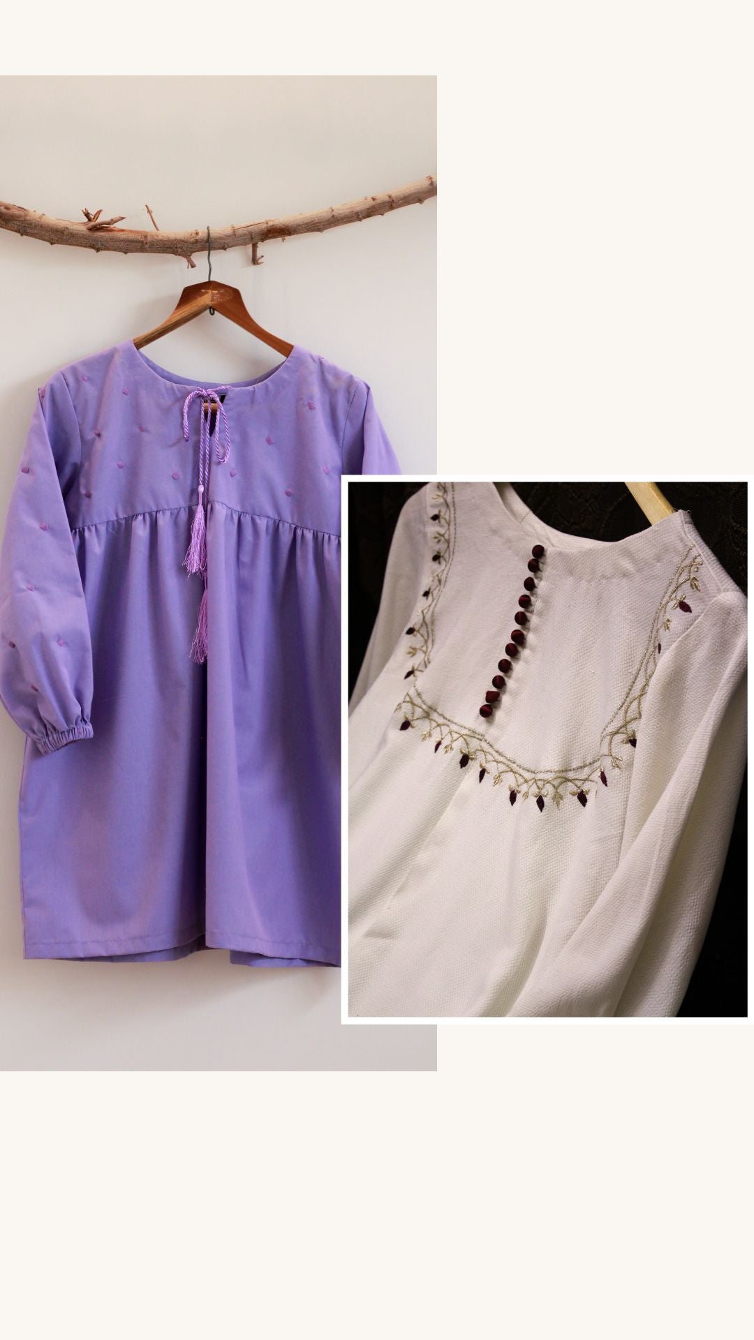 Our Daisy embroidered Ready to Wear Outfit with the combo of Lavender tunic top.