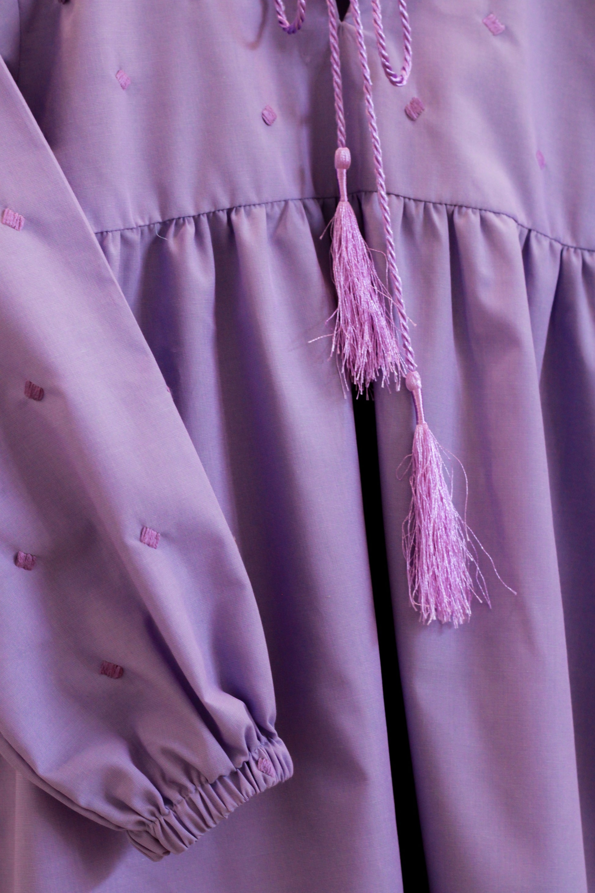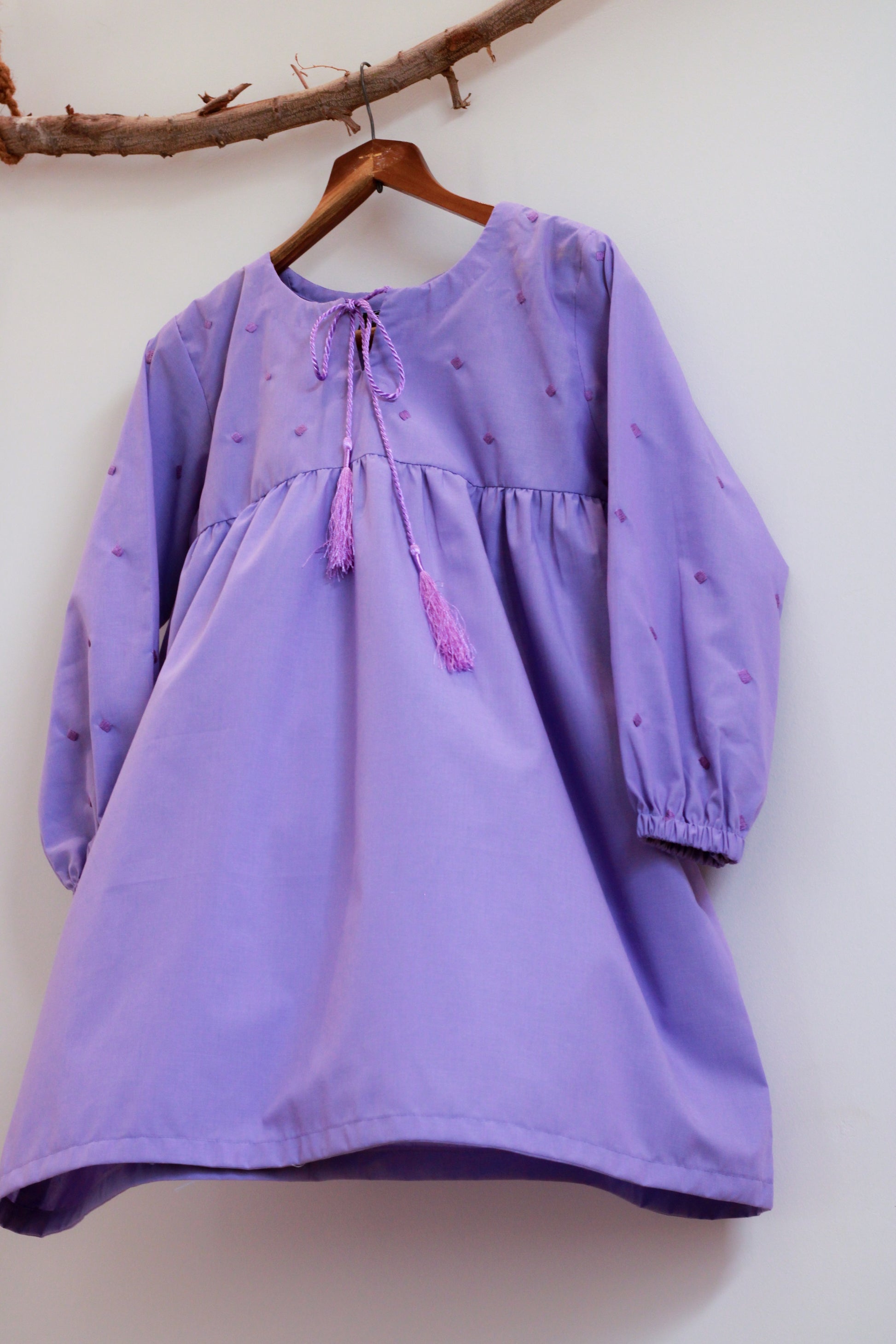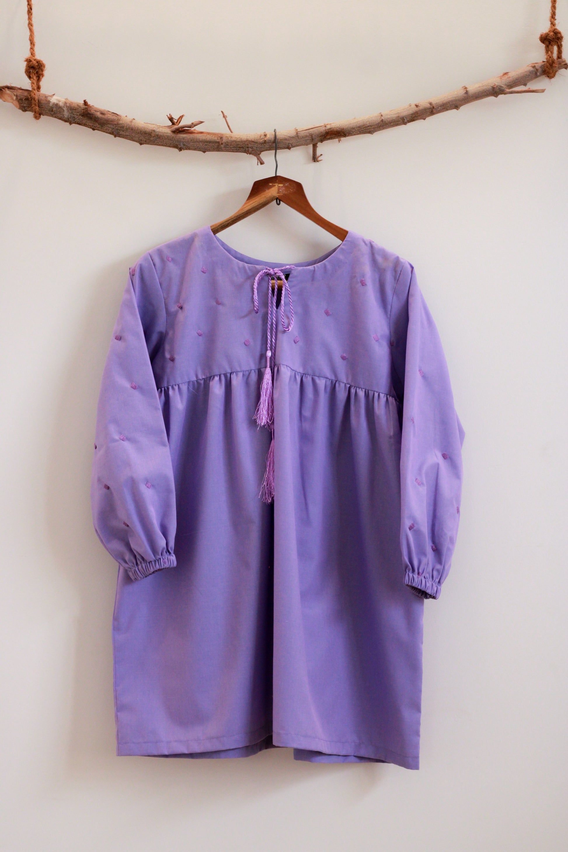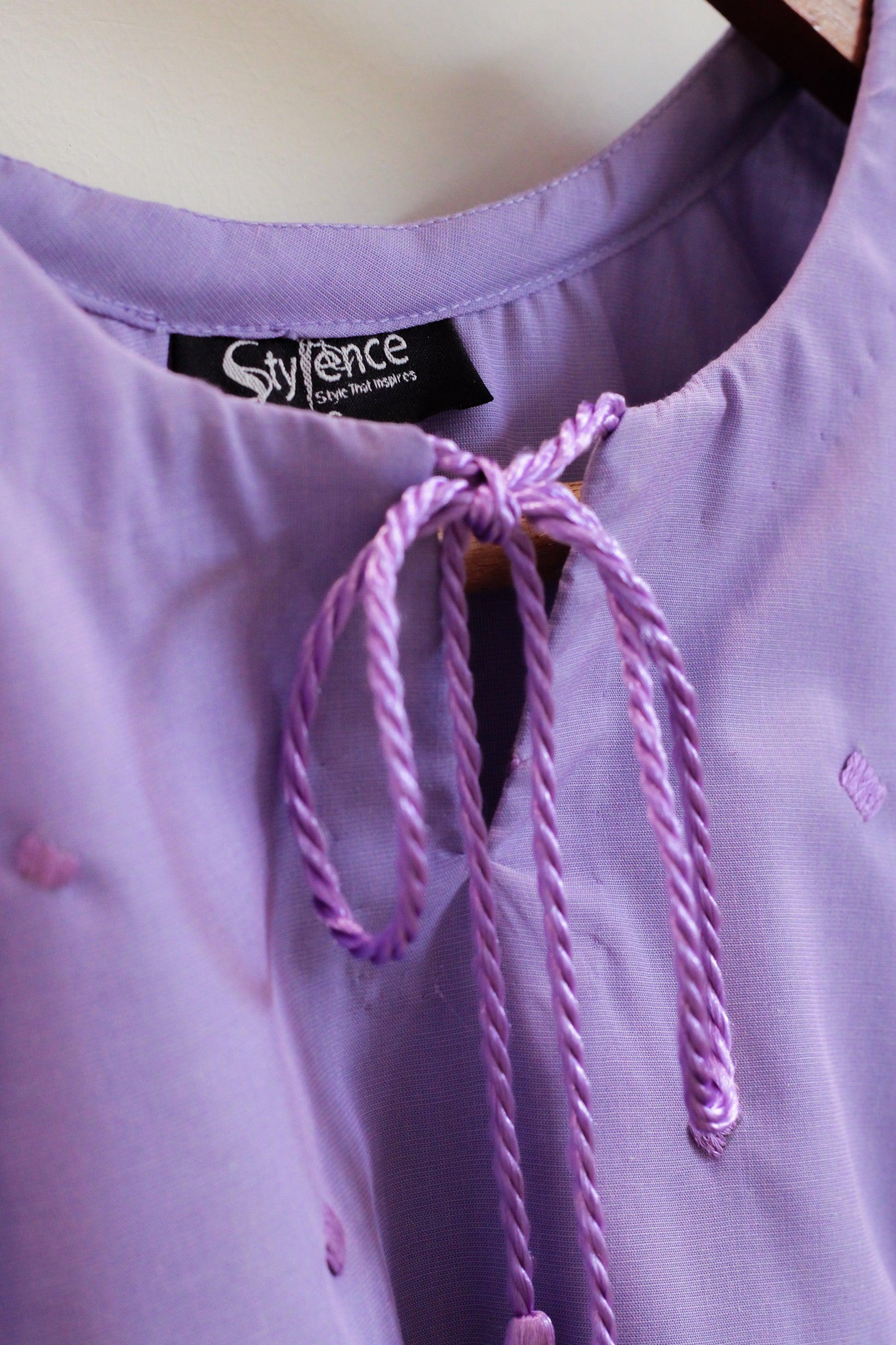 Lavendar tunic top detailed with hand embroidery on body and sleeves to make the look perfect with a combo of thread and twisted thread Dori.