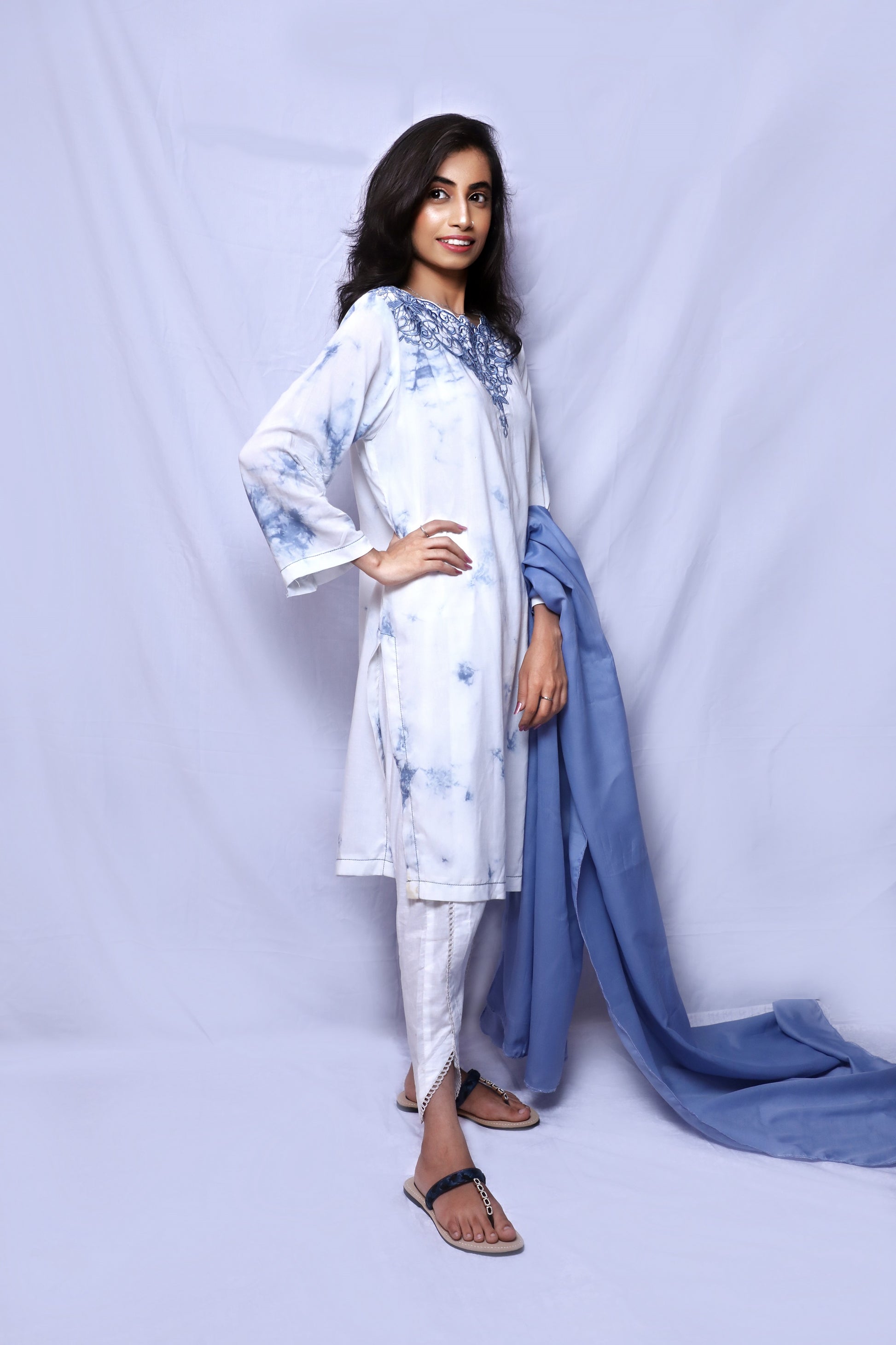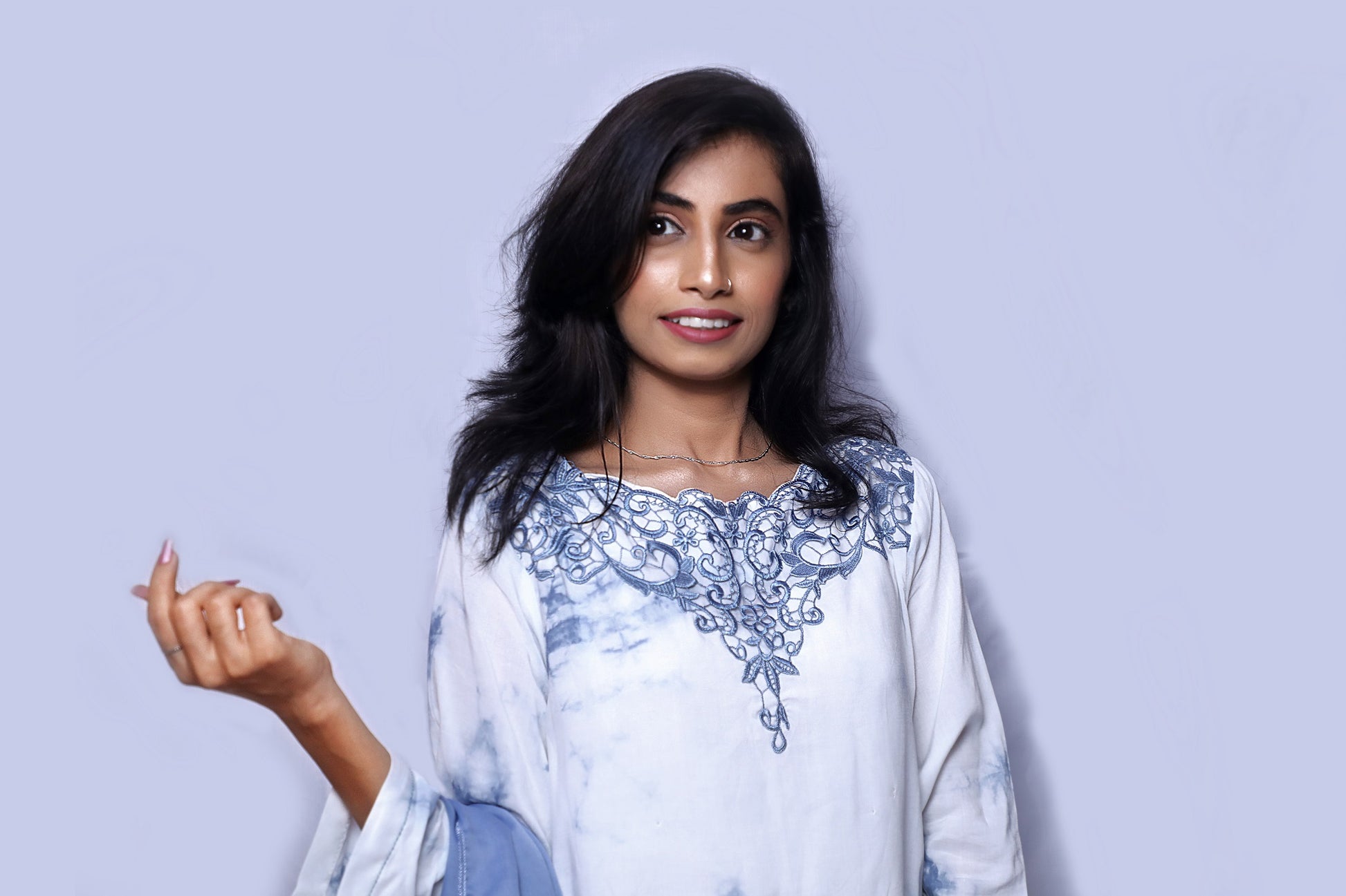 A quality stitched linen kurti with a great combination of embellished lace work at neck.